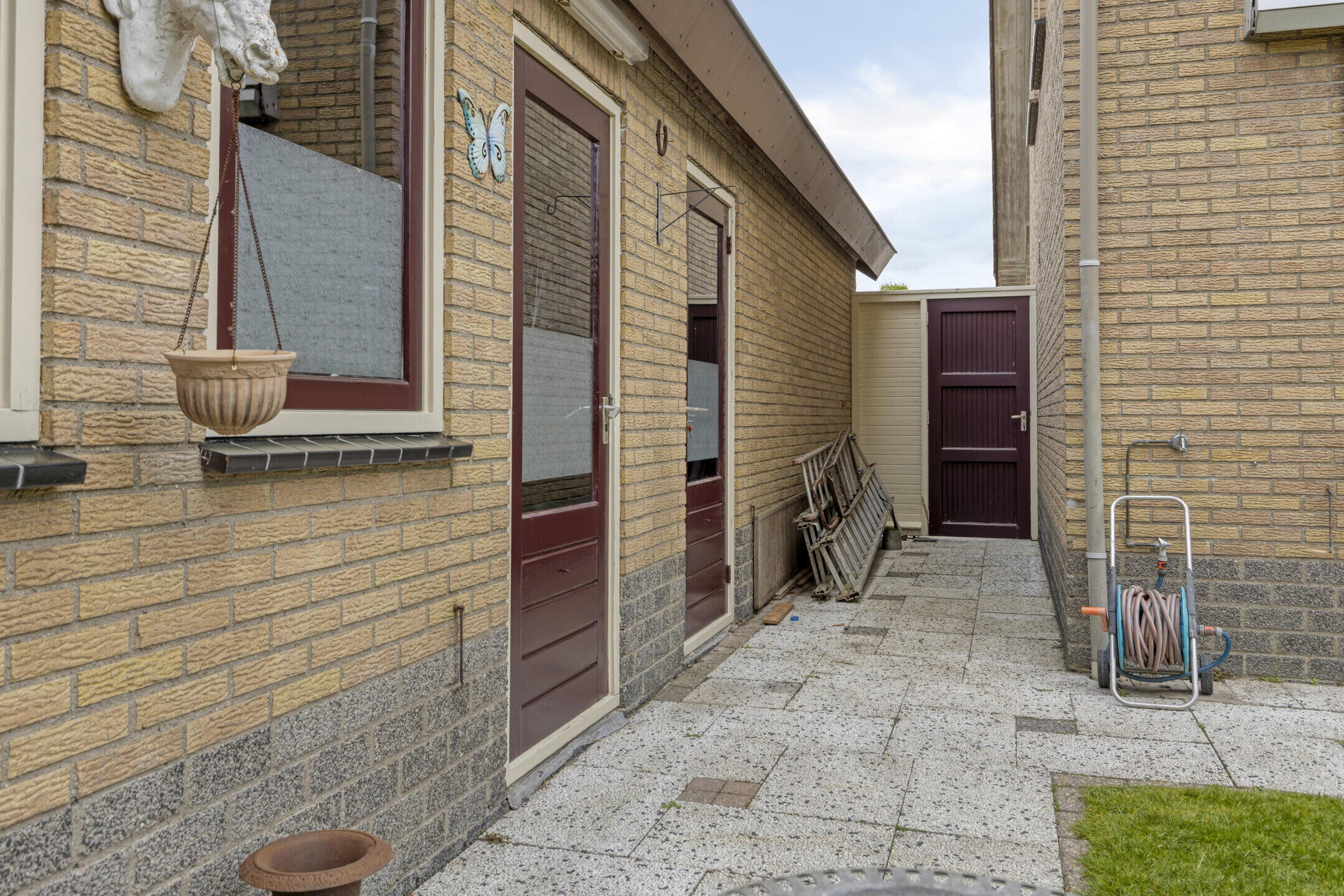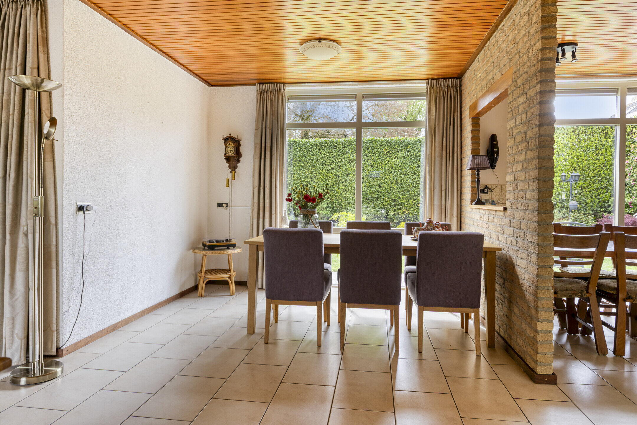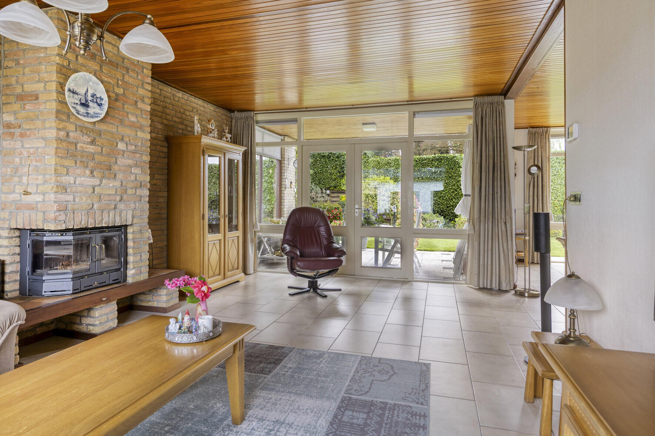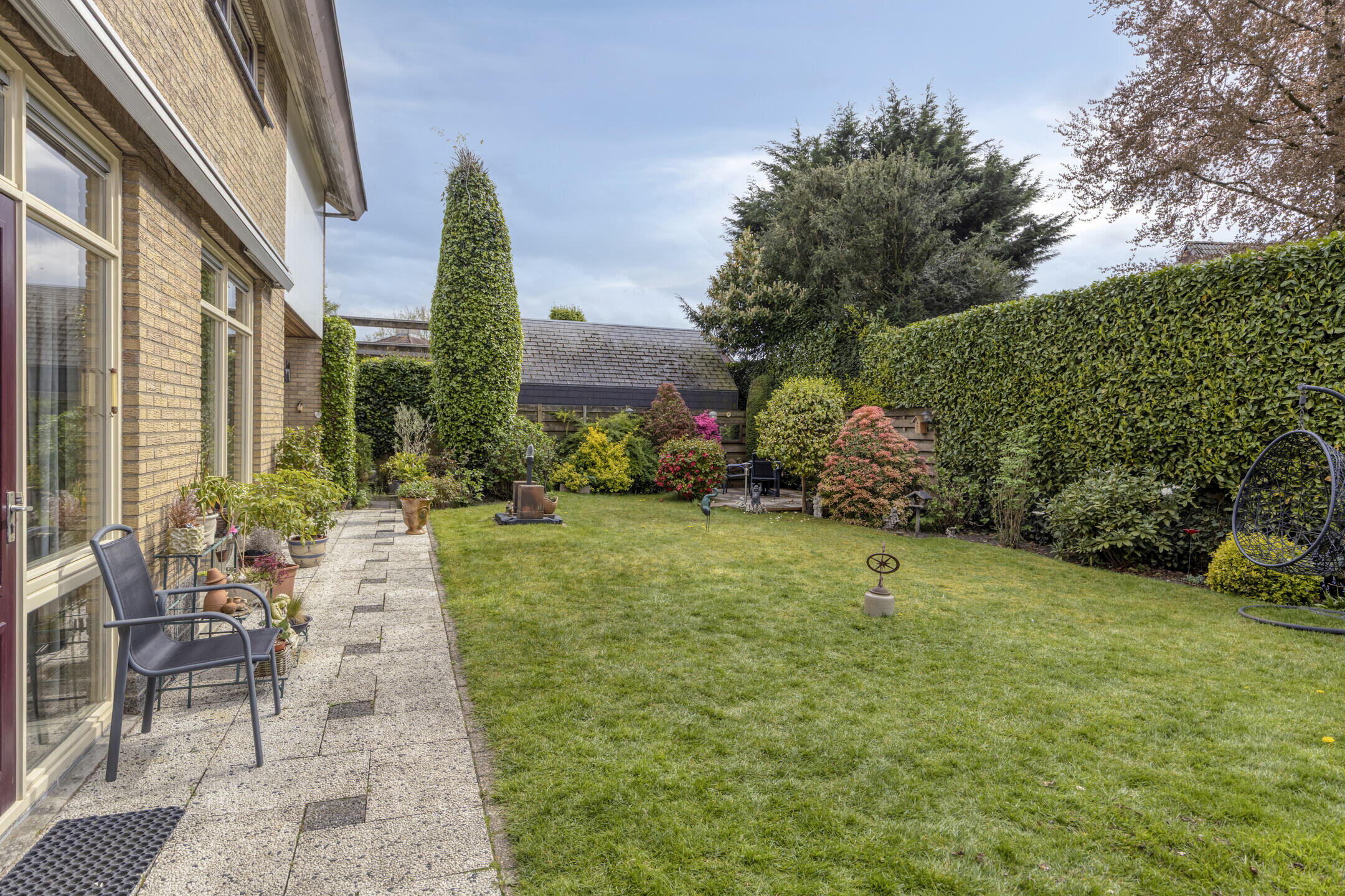 De achtertuin is een echte verrassing: ruim, groen en veelzijdig. Je bereikt de tuin via de keuken en de tuindeuren in de woonkamer, en er is ook een handige achterom aanwezig. Direct aan de woning ligt een betegeld terras met een gezellige, deels overdekte inham, ideaal voor een loungehoek of eettafel.