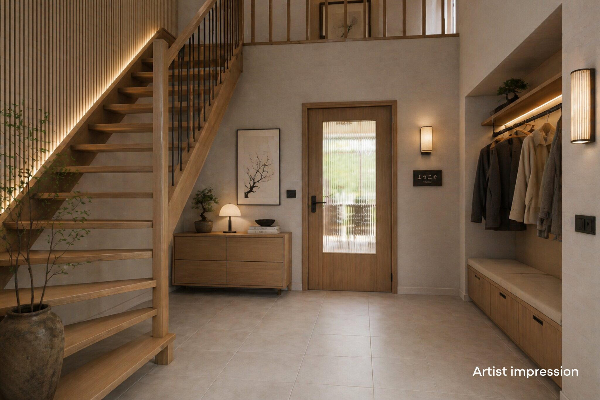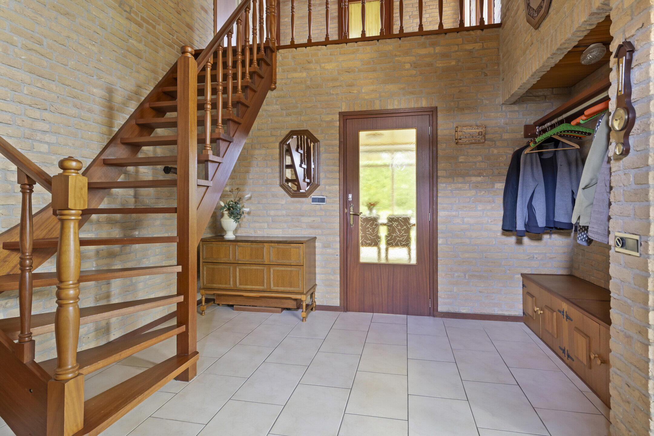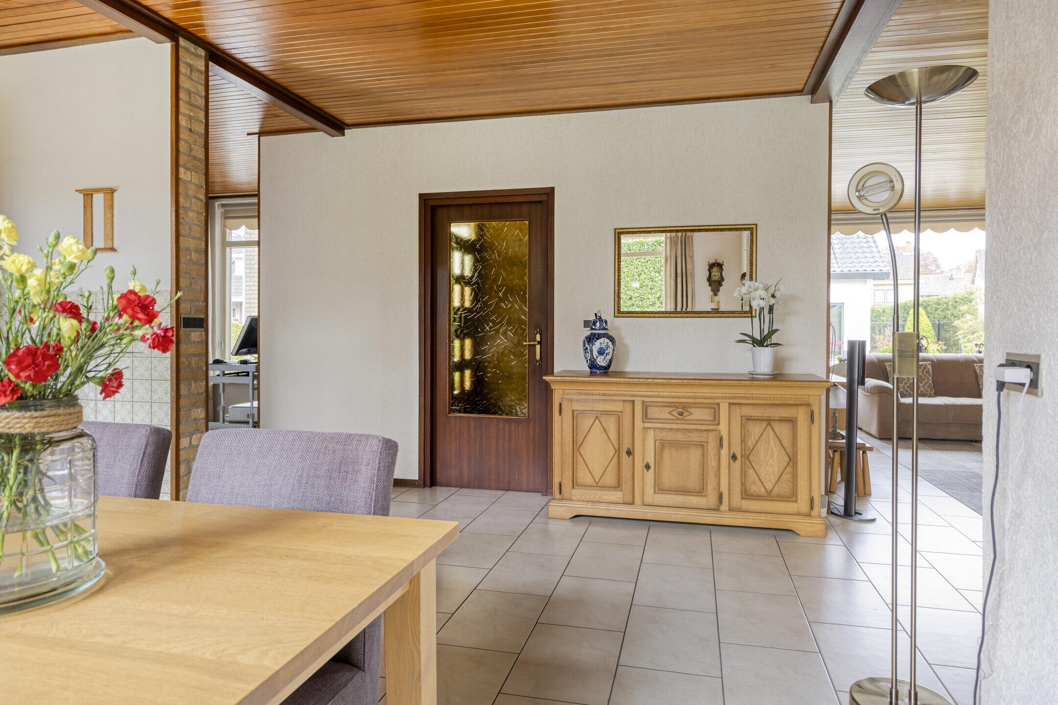 Je komt aan via de verzorgde en groene voortuin, met een ruime oprit waar je met gemak meerdere auto’s kwijt kunt. De entree leidt naar een verrassend ruime hal met plek voor een garderobe of kast. Hier vind je ook het toilet en de trap naar de eerste verdieping. Vanuit de hal loop je door naar de woonkamer.