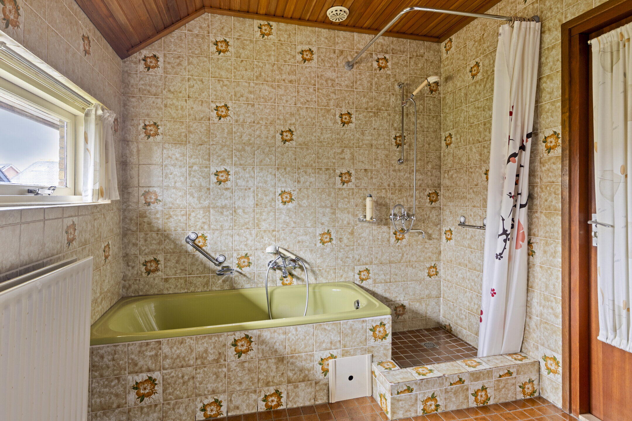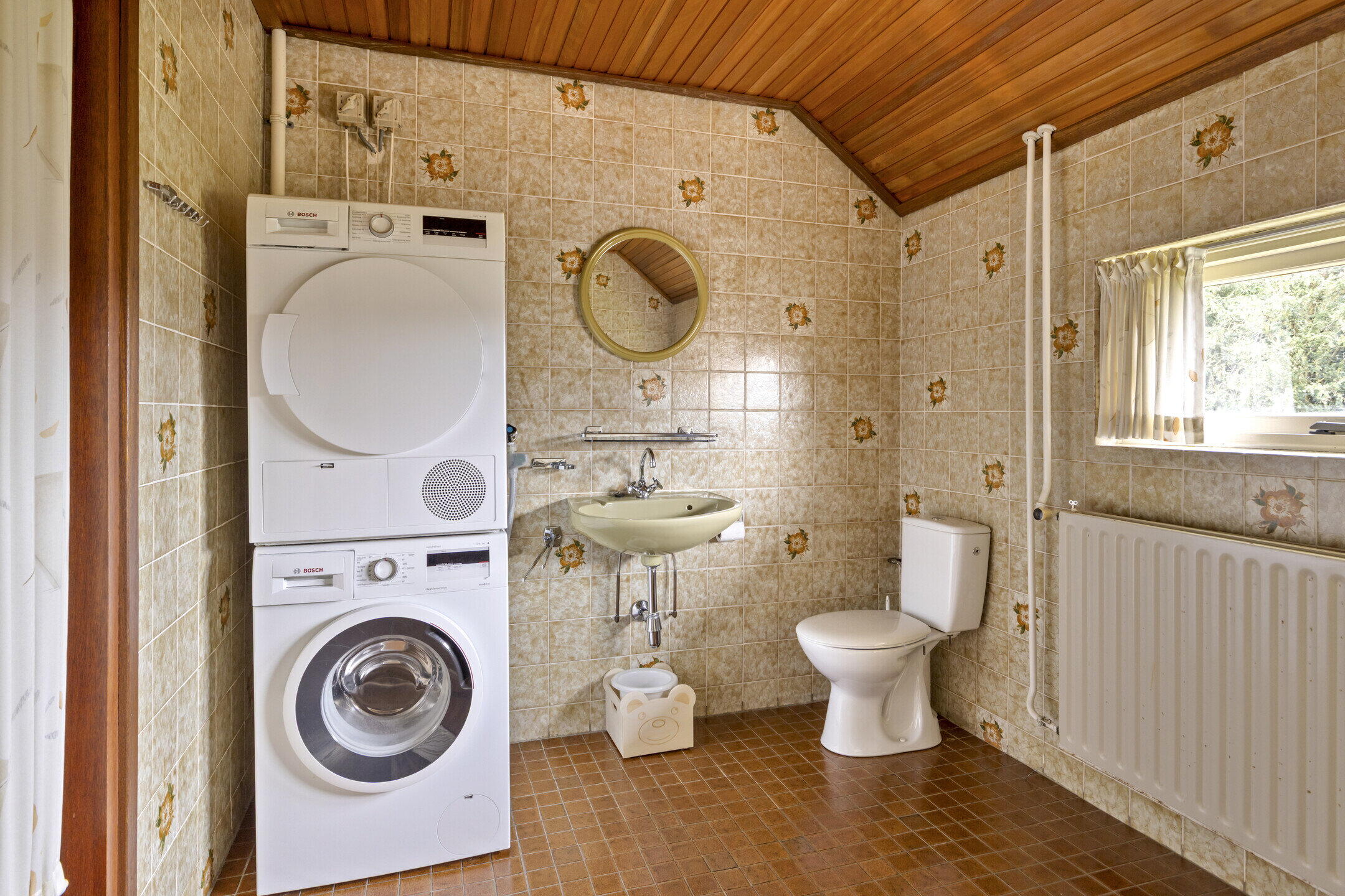 - Ligbad, toilet, douche, wastafel, wasmachineaansluiting